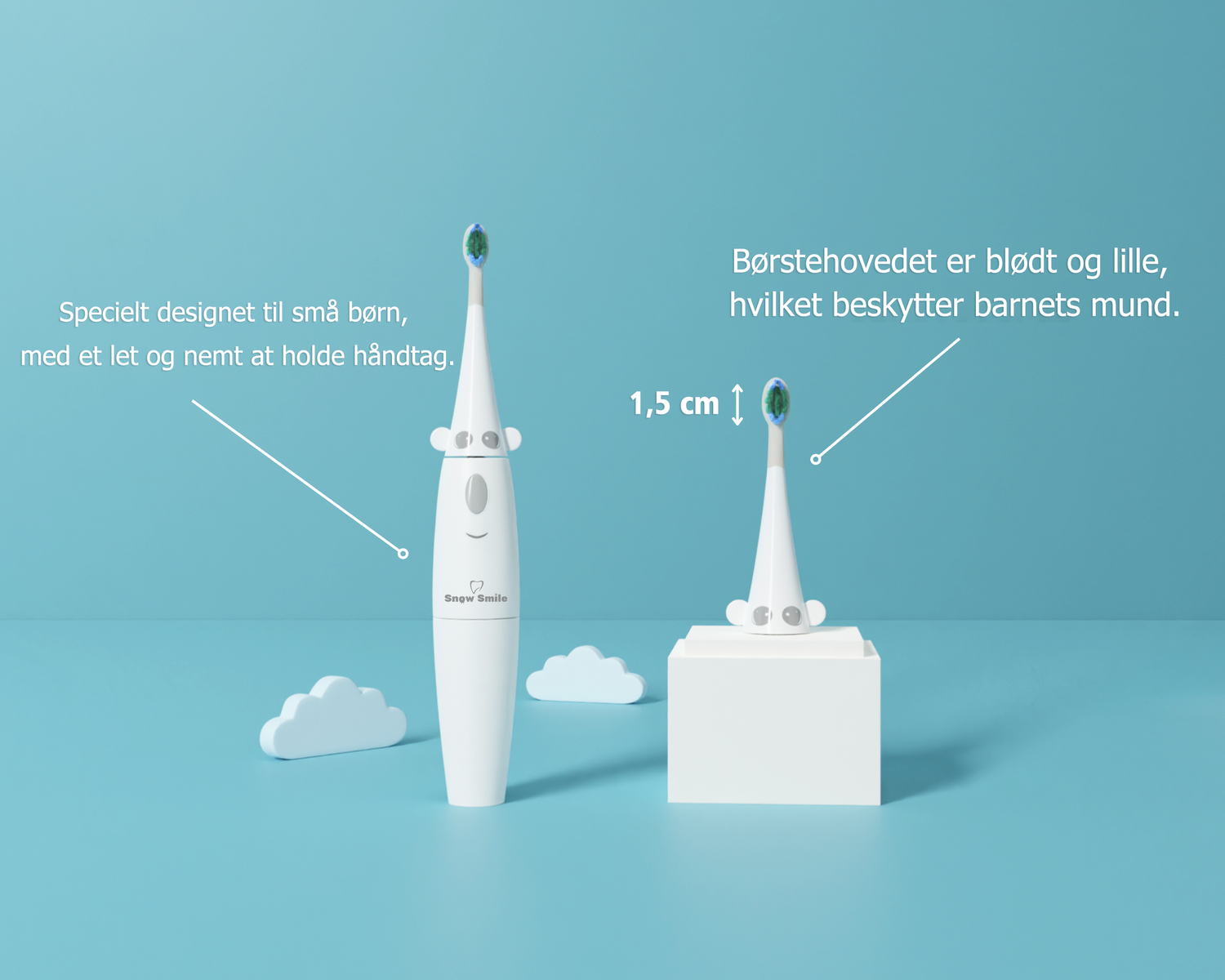 Skånsom mod tandkødet og effektiv mod huller, hjælper Snow Smile® elektriske tandbørste med at udvikle kreativitet i tjeneste for god mundhygiejne.